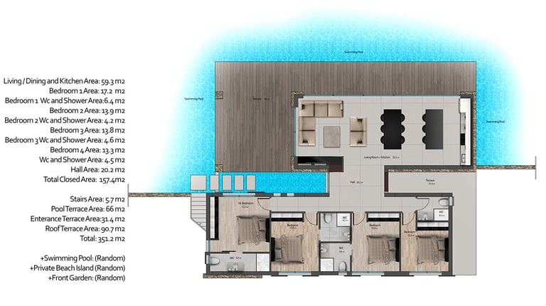 This villa features 351 sqm total area, 157 sqm living area, and a breathtaking, first front sea view.